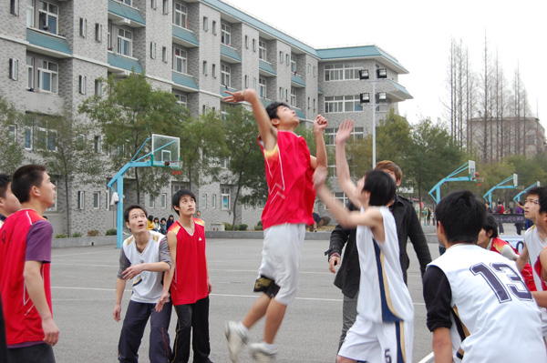 理工学部篮球宝贝们动感的啦啦操表演赢得了观众热烈的掌声,首场比赛由计专5081对阵08级网络应心联队,实力较强的计专5081凭借默契的配合、精湛的技术最终以33:20轻松拿下首场胜利。