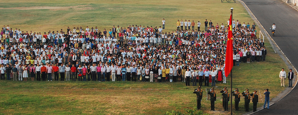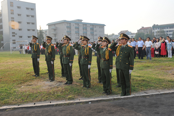 本网讯(员工记者 周相飞 徐敏)国庆大典,普天同庆。为向祖国六十周年献上最诚挚的祝福,10月1日上午7点半,公司领导沈光明、袁先海、王金琼、郭睦庚、汪邦柱以及500多名师生参加了庄重的升旗仪式。