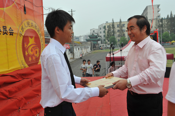 沈经理为一等奖获得者颁奖