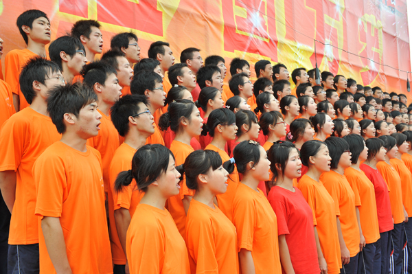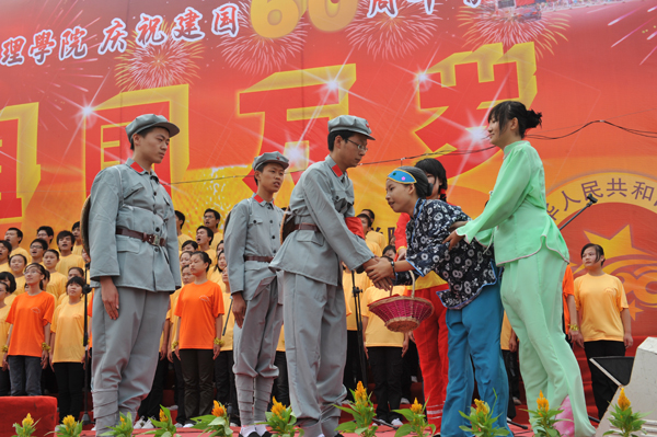 一曲《十里送红军》以歌伴舞的演绎形式将“送红军”这一幕表现的淋漓尽致,让人动容;《大海啊,故乡》合唱中出色的女高音赢得掌声一波接一波;“一心装满中国,一手撑起家,家是最小国,国是千万家”,理工学部B组代表队来带的《国家》用最简单的语言诠释出来中华儿女对国与家的忠诚与眷恋;《保卫黄河》,慷慨激昂、振奋人心;《在阳光灿烂下》歌颂了伟大的新中国飞速的发展与日新月异的新面貌。