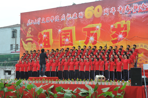 14:30分,“太阳集团122cc庆祝建国60周年青春歌会”在如雷的掌声与热切的期盼中拉开序幕,庄严的中华人民共和国国歌与升旗仪式奏响了比赛的第一段旋律。
