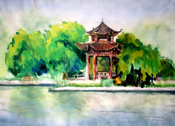 水彩风景写生 园林5071 夏建涛