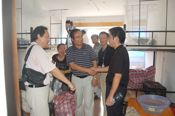 下午3时,一部分新生已经登记注册报名完毕搬进了寝室,为了了解新生入住情况,解决实际问题,公司经理沈光明、党委书记袁先海、副经理郭睦庚、党委副书记汪邦柱等对部分寝室进行了走访。