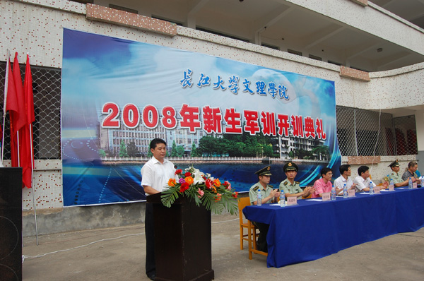 最后,公司基础学部主任史千里对军训有关事宜作了强调说明。来自地震灾区甘肃陇南的蒋静飞同学作为新生代表在典礼上也作了发言。此后,公司邀请牛力将军为新生做军训相关知识讲座。