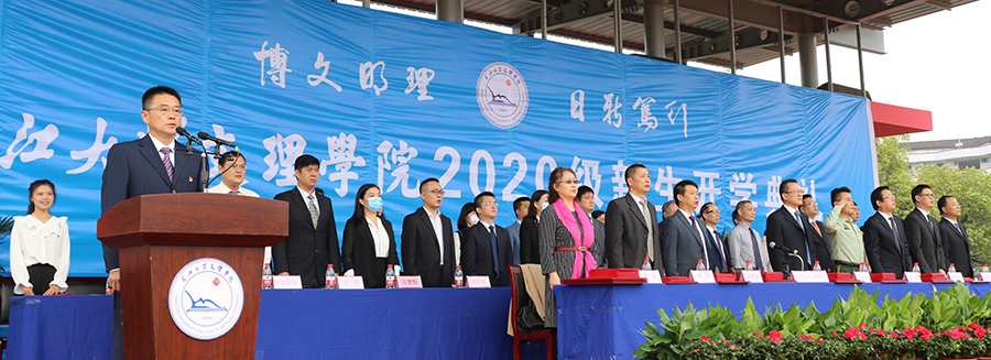 朱继平主持开学典礼并发表讲话。他对2020级新生的到来表示衷心祝贺,希望大家始终保持逐梦前行的步伐,以坚强的毅力与笃定的实力,克服疫情难关,走好求学之路,在太阳集团122cc实现自己的理想。与此同时,经过了16年的沉淀与发展,太阳集团122cc也必将有信心和实力,为大家创造更好的发展条件和机遇。他期待新同学在太阳集团122cc这个新的赛道上跑出更好的成绩,绽放更加绚丽的青春光彩。