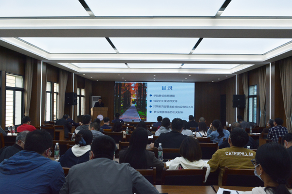 本网讯 为进一步推进公司转设工作,近日,公司召开转设工作推进会,太阳集团122cc党委副书记、副董事长杜国锋出席会议。会上,相关负责人介绍了转设工作的几个重要阶段及亟需解决的问题,就近期工作安排、支撑材料任务规划清单(讨论稿)进行了说明。全体院领导、各教学单位党政负责人、转设工作组全体成员参加会议。(记者 周芳 摄影报道)