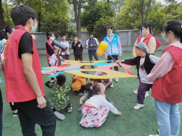 本网讯 5月17日下午,人文与传媒公司携手行志愿者联合荆州区御河社区儿童成长小组前往社区共同开展“让爱留守,伴你成长”主题志愿活动,通过带领小朋友们进行游戏互动,丰富小朋友们的日常生活,培养孩子们的兴趣爱好。(通讯员 唐玉婷 林冰宇 摄影报道)