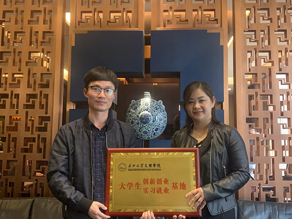 在访企过程中,于永伟一行与就业单位签订了就业合作框架协议,与合作单位举行了实习就业授牌仪式,为企业送上了代表荆州特色的虎座鸟架鼓作为纪念。