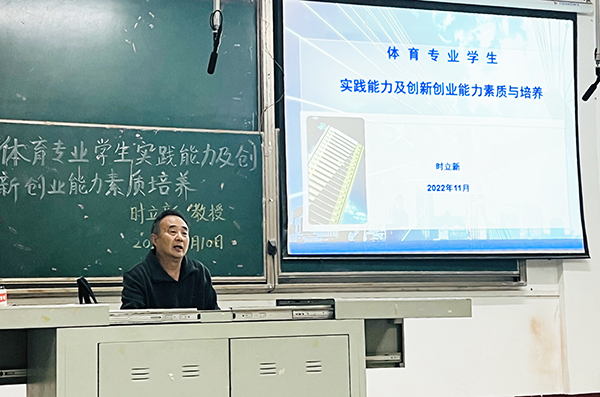 本网讯 11月10日晚,时立新教授在西校区D4-200教室为体育系学子作题为《体育专业员工实践能力培养及创新创业能力素质与培养》的专题讲座。
