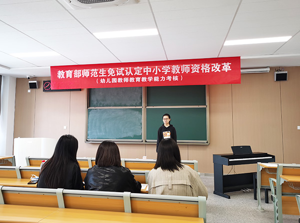 本网讯 4月8日,教育与心理公司举行幼儿园教师公司产品能力考核,共有39名员工申请参加考核。考核共设4个考场,1个笔试考场和3个面试考场。笔试题目参照国家教团队格考试标准和大纲,综合考察师范生职业理念、教育法律法规、教师职业道德规范、文化素养和基本能力等。面试采取讲课、说课、模拟教学活动设计等方式,考核申请人的教师基本素养及教学设计、教学实施、教学评价水平等。考核结束后按成绩排名划定通过比例,由公司颁发《师范生教师职业能力证书》。该考核是根据《教育部关于推进师范生免试认定中小学教团队格改革的通知》要求,面向公司学前教育专业员工设置。(图文由教育与心理公司提供)