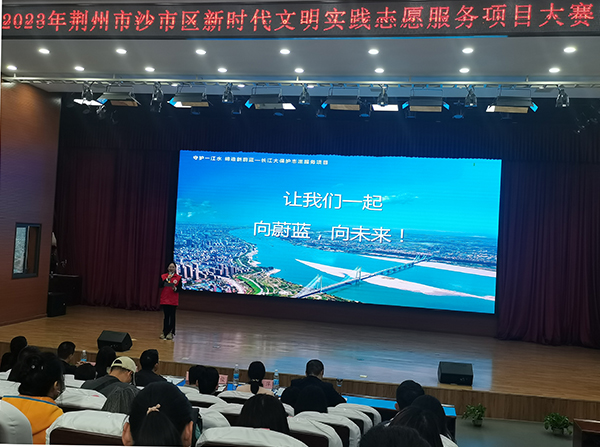 4月25日,2023年荆州市新时代文明实践志愿服务项目大赛沙市区初赛举行。比赛现场,来自荆州各界选送的21个参赛项目同台竞技。经过激烈角逐,人文与传媒公司联合解放街道荆江亭社区选送的《守护一江水 缔造新蔚蓝—长江大保护志愿服务项目》荣获优秀组织奖,公司员工喻洁颖作为项目主讲人上台汇报和领奖。(各教学单位供稿)
