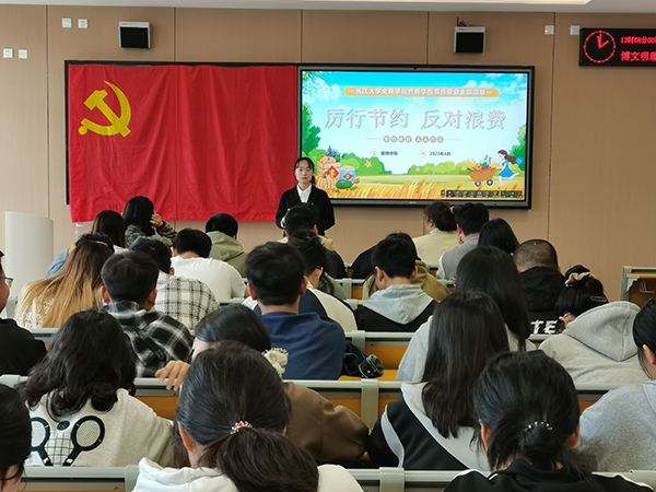 本网讯 4月25日晚,信息与机电工程公司在B-213教室举办“反对浪费,崇尚节约”主题宣传教育活动。
