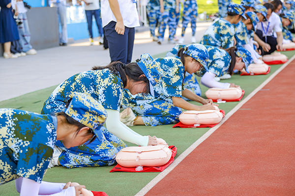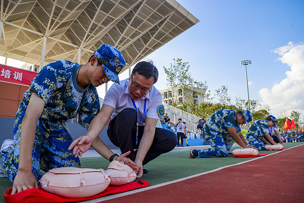本网讯 又是一年军训时,近日,公司2023级新生军训正式开启。1700余名员工分为10个营、33个连。在为期15天的军训中,他们将学习基本军事知识、基本军事技能、内务整理、创意队形训练、国旗班正步训练和分列式训练等内容。14日下午,荆州市急救中心携带多个急救模型走进公司,对参加军训的大学新生开展基础生命支持培训。急救导师详细讲解了学习急救的重要性、必要性以及规范流程,并现场演示心肺复苏的动作要领,员工们踊跃上台模拟练习,掌握急救规范程序、胸外按压、人工呼吸等技术要领。(通讯员 潘路 见习记者杨阳 摄影报道)