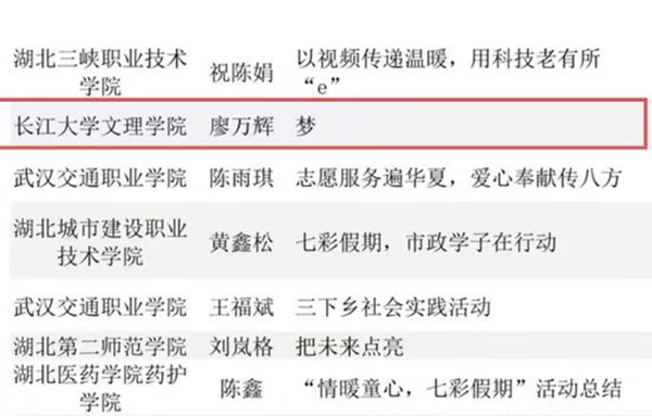 本网讯(记者 筱梦 通讯员 黄婷婷)近日,中国青年报社开展的“广袤乡村 书写青春”2023老员工社会实践成果“千校千项”网络展示活动成绩公布:公司高职部晨曦志愿者服务队廖万辉同学带领团队开展的“三下乡”社会实践项目获优秀项目奖,晨曦志愿者服务队制作的视频《梦》获优秀视频奖。