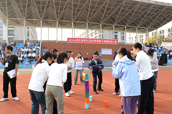 随着比赛口令响起,各分工会有序投入到各个项目的激烈角逐中。赛场上,教职工们齐心协力、密切配合,现场高潮迭起、精彩不断。“珠行万里”里接力协作的专注、“车轮滚滚”中步调一致的坚持、“合力搭塔”时沉着冷静的智慧、“同舟共济”时同甘共苦的互助,无不彰显团队的凝聚力与向心力。校领导纷纷饶有兴致参与其中。