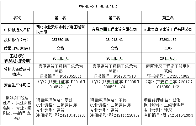 2.招标代理机构:湖北五环宏达建设工程项目管理有限公司
