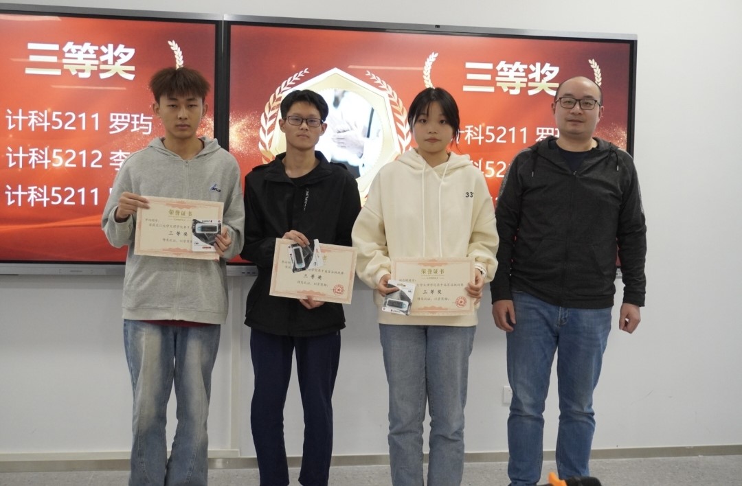 根据竞赛实施办法有关精神,经笔试、机试、教师指导组评审、会议研究等程序,最终成绩揭晓:敖屹同学荣获一等奖;祝成贽、刘成富同学荣获二等奖;罗玙、李向阳和胡启明荣获三等奖。随后院领导为获奖员工颁奖。