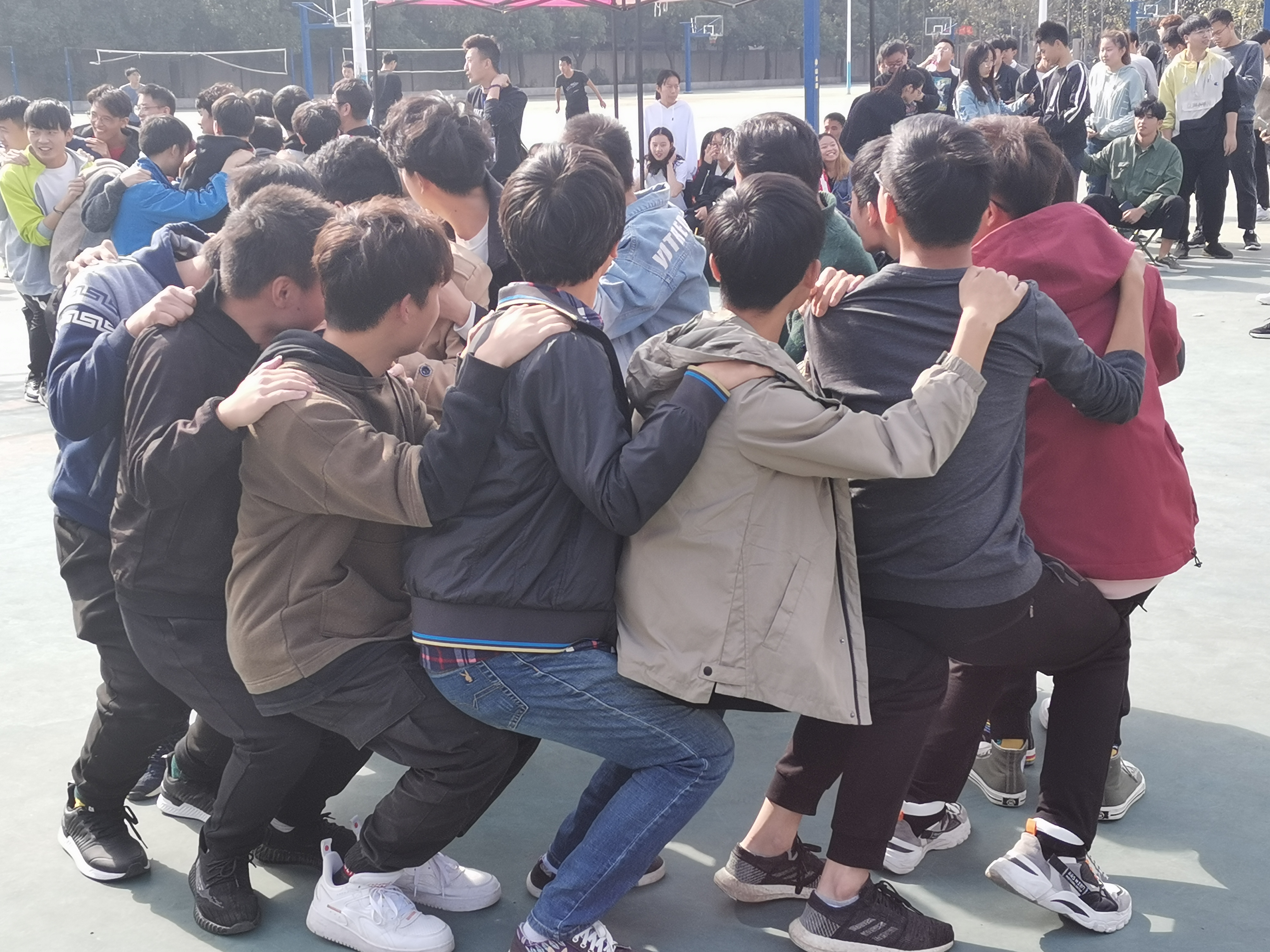 本次心理健康教育户外团辅活动是十一月心理文化宣传月系列活动重要内容,以班级为单位开展活动,共设置了“无敌风火轮”、“人椅”、“衔纸杯传水”、“缩圈”四个创意比赛项目,并由我系心灵驿站承办,具体由团总支员工会及志愿者服务队全体成员一同组织、策划、实施。