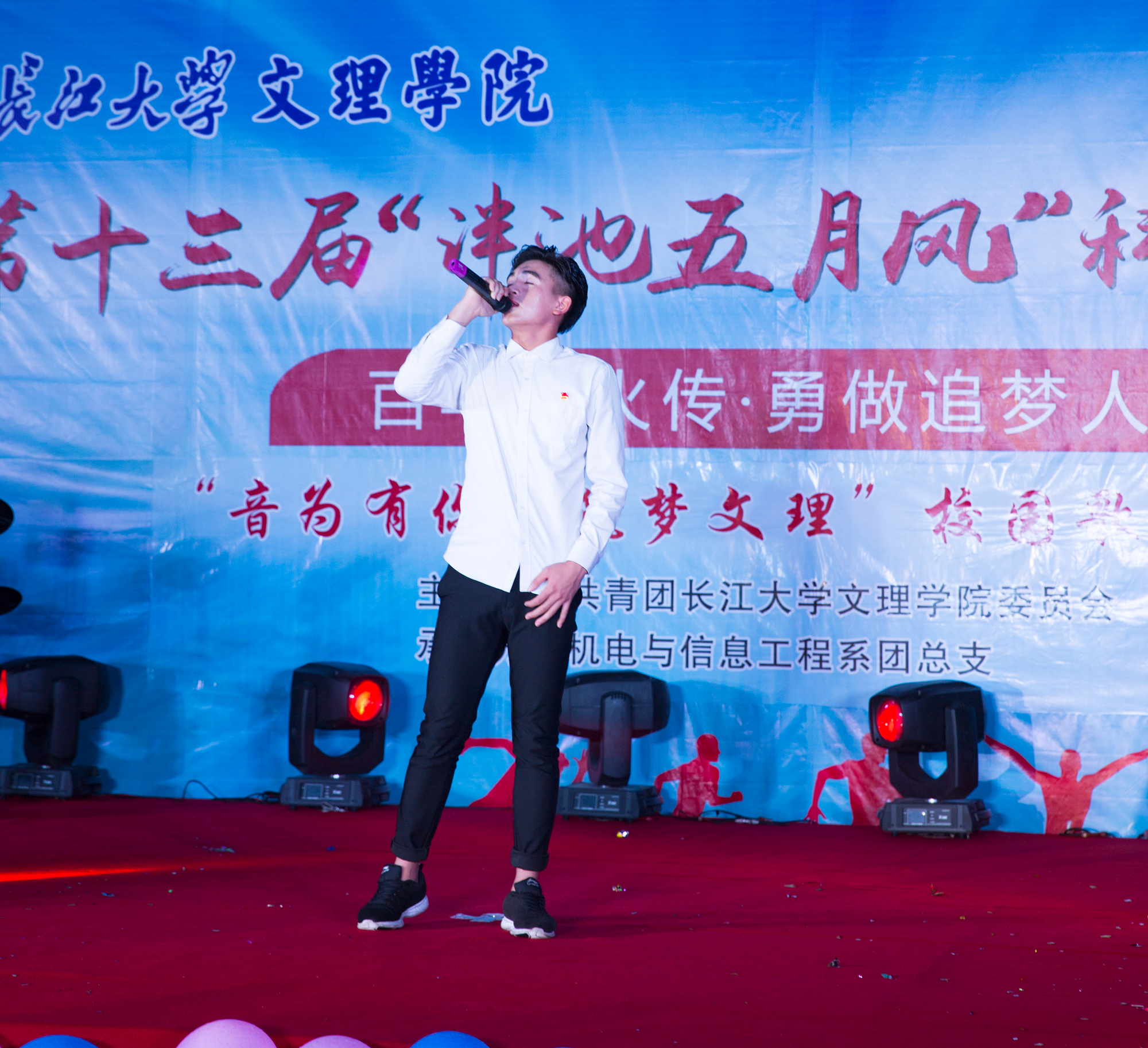 本网讯(员工记者 刘文婷)5月16日晚,在公司西校区篮球场,由我系承办的第十三届“泮池五月风·科技文化节之校园歌手大赛”闭幕式暨颁奖典礼隆重举行。公司经理梅平、副经理李琴、党委副书记孙细望、纪检部部长兼工会主席尤金荣、学工部部长兼团委书记罗婷及各系部相关负责人出席观看。机械5171卲琦、广电5171唐家旋、物联5171孙甜主持。