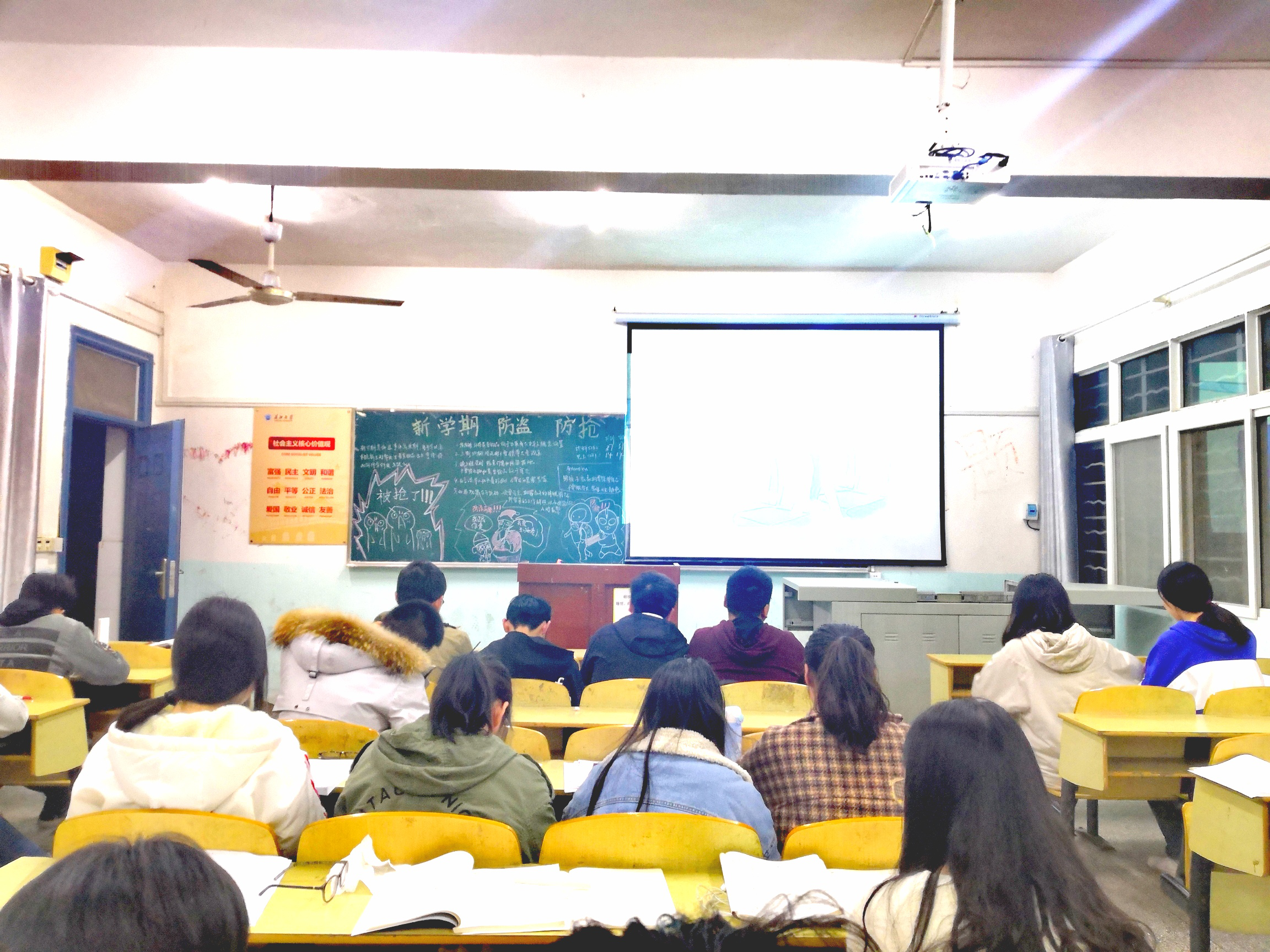 本网讯(员工记者 刘瑞华)3.12日晚,为使同学们了解一些防盗、防抢的安全常识,提高安全警惕,保障自身安全,我系各班开展防盗防抢教育主题班会。班会由各班班干部主持,各班同学全员参加,辅导员李辉、成观雄出席。