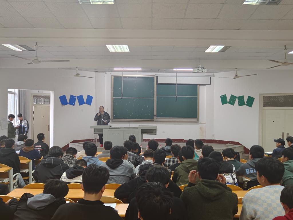 会议开始,梁老师根据《关于全国老员工先进成图技术与产品信息建模创新大赛选拔赛的通知》,围绕“竞赛内容”、“竞赛要求”、“选拔方式”三个方面,向同学们讲述了大赛的相关信息。其后,朱老师进行大赛动员宣讲,他强调参赛是提升专业技能的有效途径,能够让同学们更好的掌握所学专业知识。随后,往届获奖的同学陈宋基、郭露、刘珈祯分别从“三维建模”、“工程制图”、“零件装配”三个内容分享比赛经验,并建议同学们提高对绘图软件的熟练度和对图纸的理解速度,备赛中同学们需要有足够的耐心与细心。最后,成书记上台总结发言,他希望同学们依托比赛珍惜比赛机会,努力提升自己的专业技能。