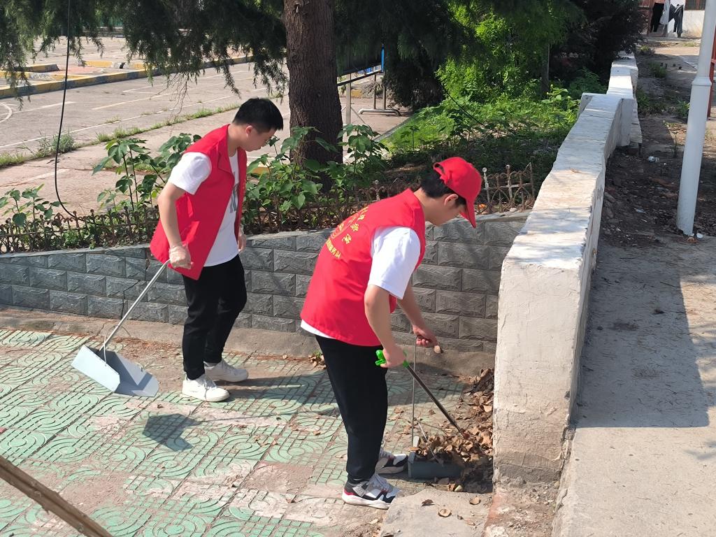 活动开始,社区工作人员向志愿者们分发活动的打扫工具,并详细说明了活动要领及注意事项,随后,志愿者们针对附虫鼠问题,寻找楼栋周围的灭鼠诱饵站,放置相应的诱饵,减少周边的食物或垃圾。在辅导员宋文镖的带领下,志愿者们拿起扫帚、夹子等工具,清理庭院内的积水落叶,经过志愿者们的辛勤劳动,楼院变得干净整洁,为社区增添了一抹清新与亮丽。
