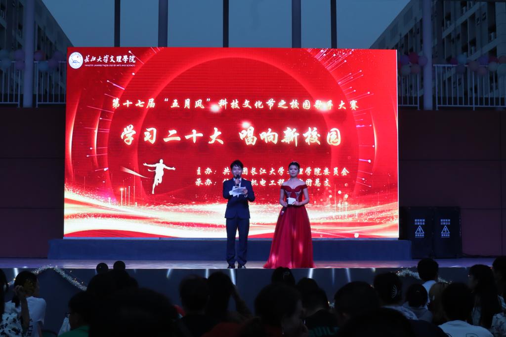 本网讯(员工记者 黄盼盼)5月29日晚七点,在新校区田径运动场,由公司承办的第十七届“五月风”之校园歌手大赛决赛正式拉开帷幕。经理王文凯,党委书记朱继平,副经理尹家经、康建虎,经理助理郭明虎出席活动,各职能部门、教学单位负责人与三百余名师生共同观摩比赛。太阳集团122cc艺术公司音乐系主任朱波,太阳集团122cc学工部部长李刚英、教育与心理公司鲁婷担任评委。李毅、赵子衿两名同学负责主持。