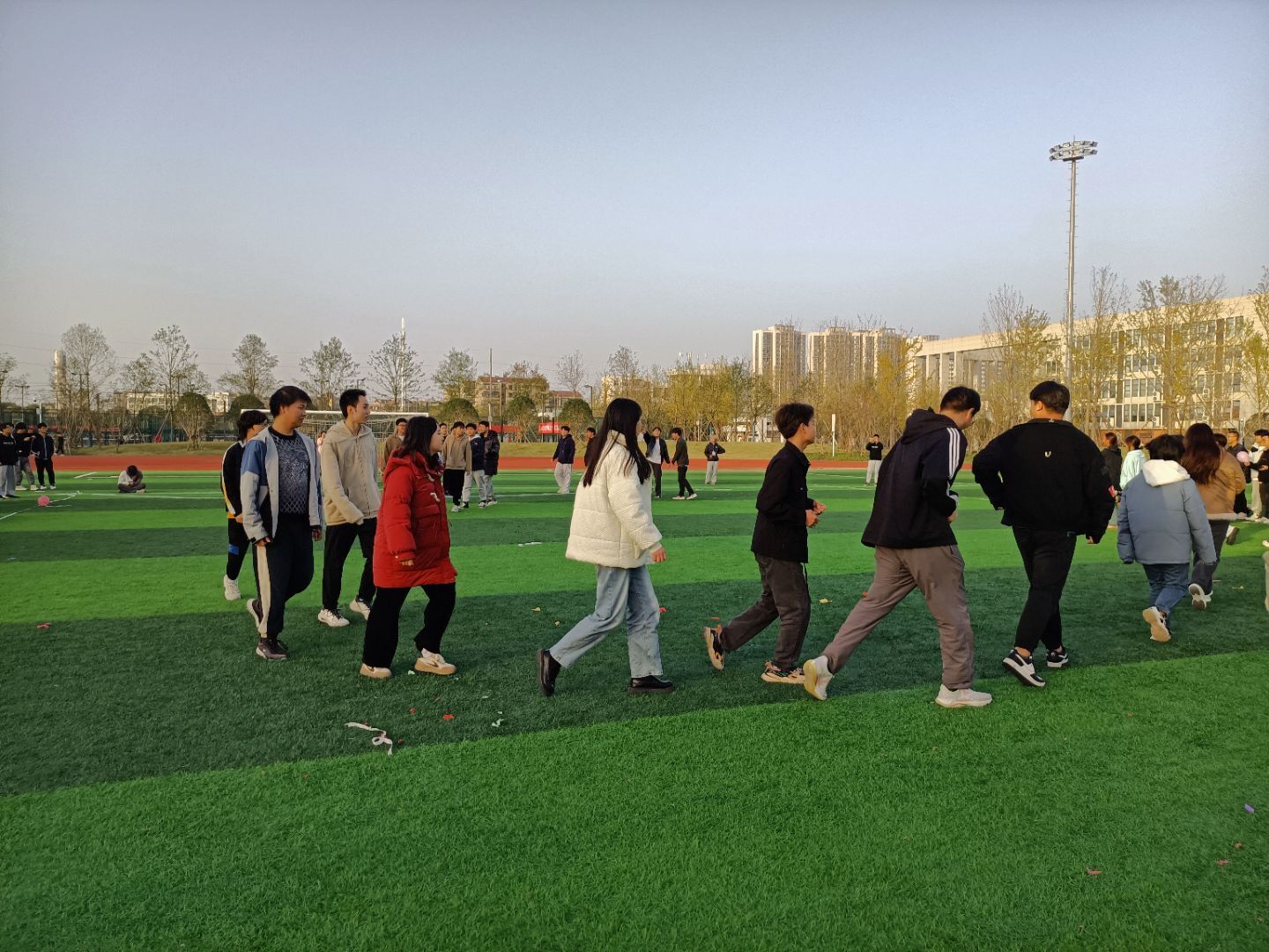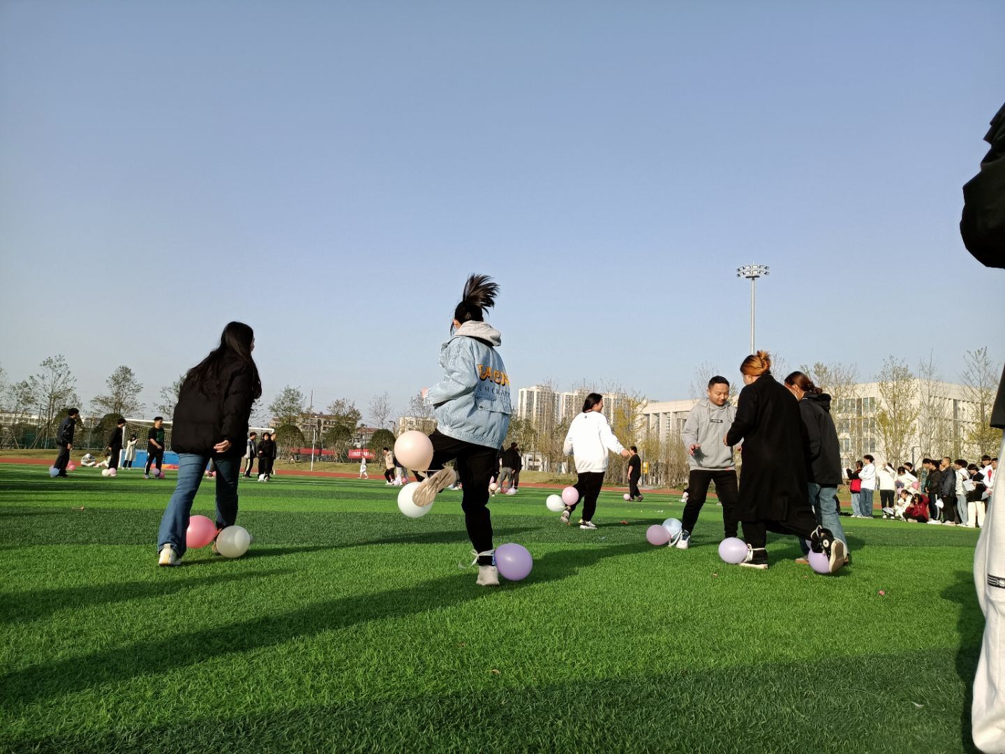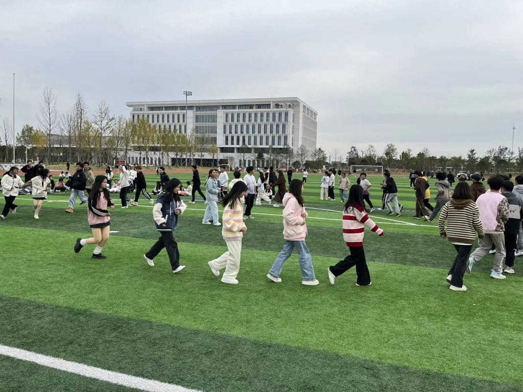 “悦动心灵”户外素质拓展活动中,“两人踏板”、“气球爆爆爆”、“接力赛”、“快乐抱抱抱”、“两人三足”、“气球接力”六项游戏充满趣味性,活动现场同学们全情投入,现场充满了欢乐与活力。