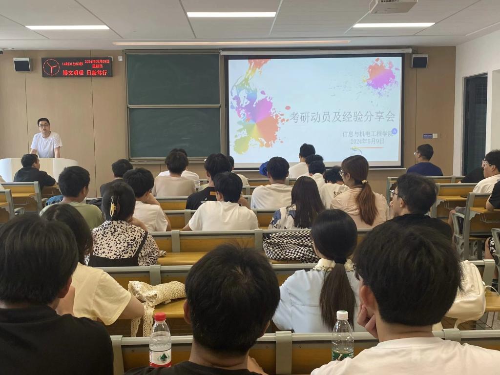 本网讯 (通讯员 贺凡格/文 杨祥涞/摄)公司于5月9日下午在A-208教室举办2025届考研动员暨经验分享会,公司党总支副书记王大专,辅导员燕梦蝶、朱亦丹出席会议。