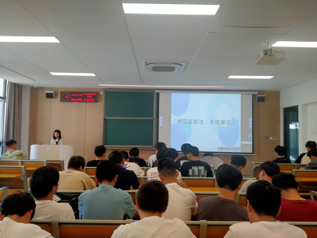 为了让同学们了解监察法的背景意义与主要内容、明确检查工作的原则,各辅导员组织观看视频,以相关案例为例,讲述廉洁自律故事,并组织大家围绕“老员工应该如何做到‘修德求真’、如何做一个廉洁人等问题”展开讨论。