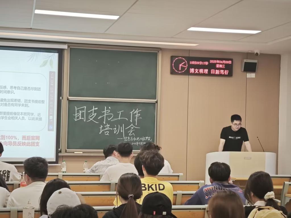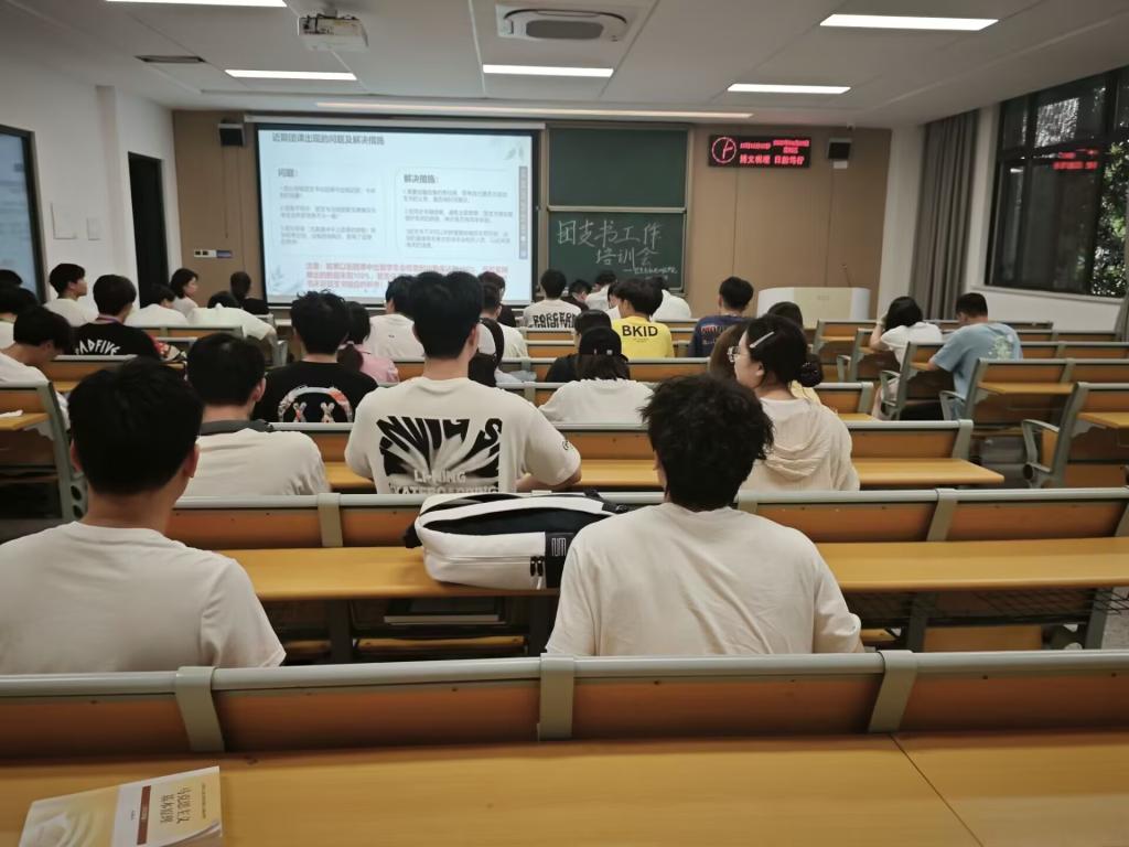 本网讯(通讯员 江心悦/文 王烁阳/摄)为充分发挥团支部组织青年、宣传青年、凝聚青年、服务青年的职责,切实提高公司新学期团学工作建设成效,4月9日下午,公司于c-121教室开展了团支书工作培训会。本次培训会由院员工会组织部董文静同学主持,辅导员朱亦丹出席会议,院员工会主席团成员、各班团支书参加会议。