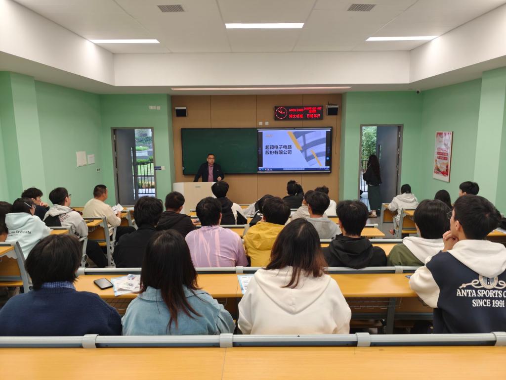 本网讯(通讯员 熊超峰/文 沈会好 朱洪昌 熊超峰/摄)为更好地拓宽公司员工的实习就业渠道,帮助毕业生实现充分就业、高质量就业,公司邀请兆兴博拓科技股份有限公司和超颖电子电路股份有限公司于10月16日在A-108教室开展毕业生就业专场宣讲会,2026届相关专业毕业生参加。