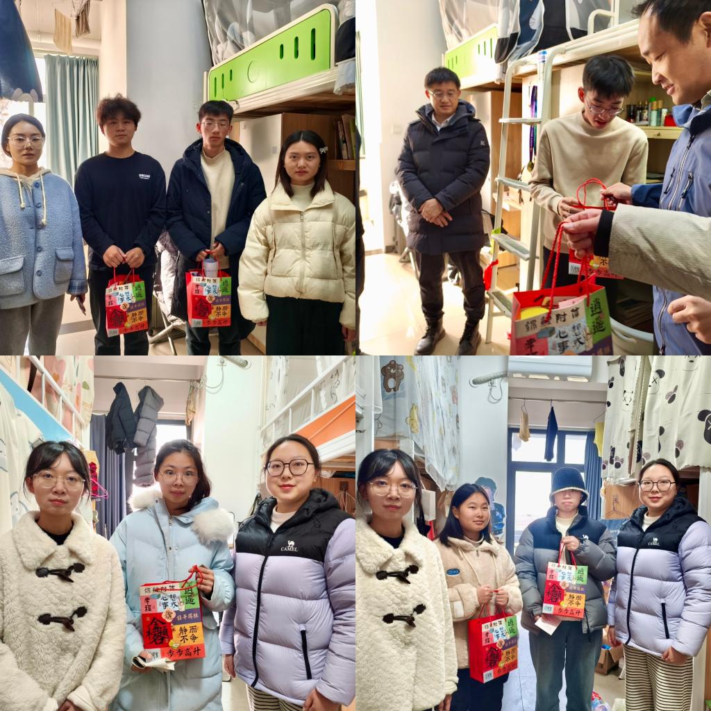 每到一个寝室,老师们与考研学子们面对面交流,了解同学们的复习进度、备考状态以及生活情况,勉励大家在最后冲刺阶段,能够科学规划、劳逸结合,保持平稳心态,以最佳状态迎接挑战。