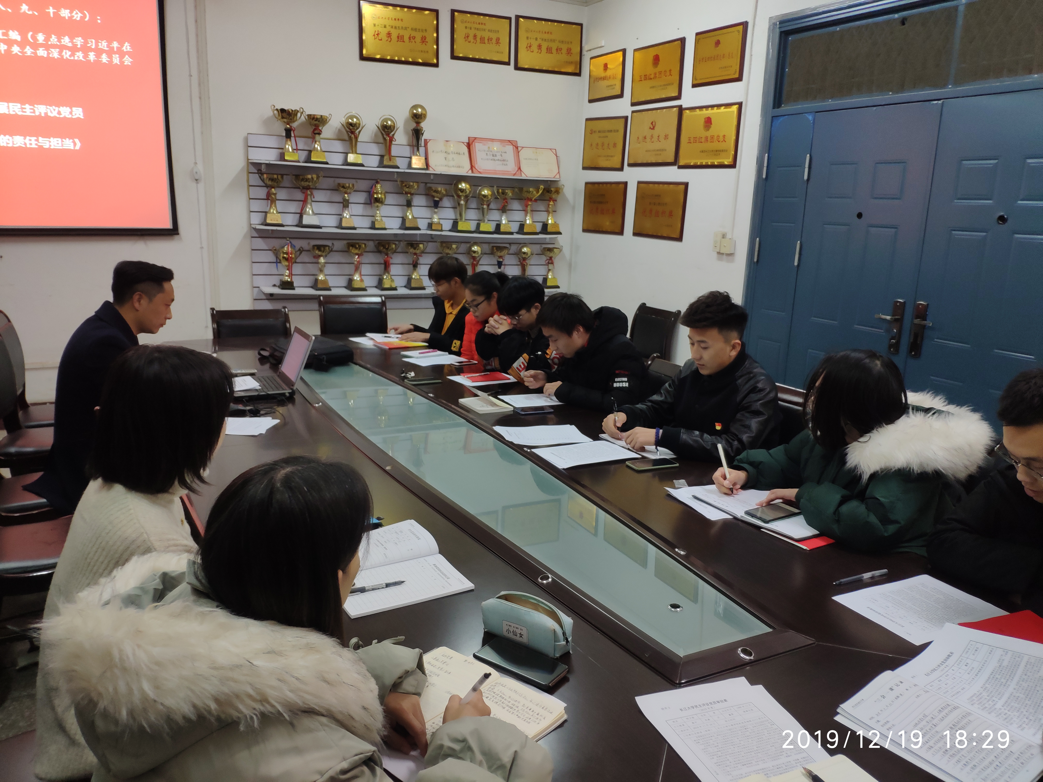 本网讯(员工记者 刘文婷)12月19日晚,我系员工党支部在会议室开展12月份政治学习和“支部主题党日”活动。系党总支副书记辛裕主持,15名员工党员全员参加。