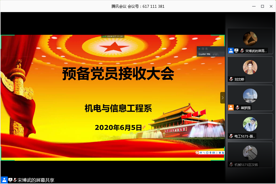 本网讯(员工记者 刘文婷)6月5日中午,在腾讯会议平台,我系员工党支部召开预备党员接收大会。会议讨论陈锟、区汉铭、聂雅兰、张萍、刘豪杰、孙文静、余召义七名同志的接收事项。系党总支副书记辛裕主持会议,相关培养考察人一同参与。