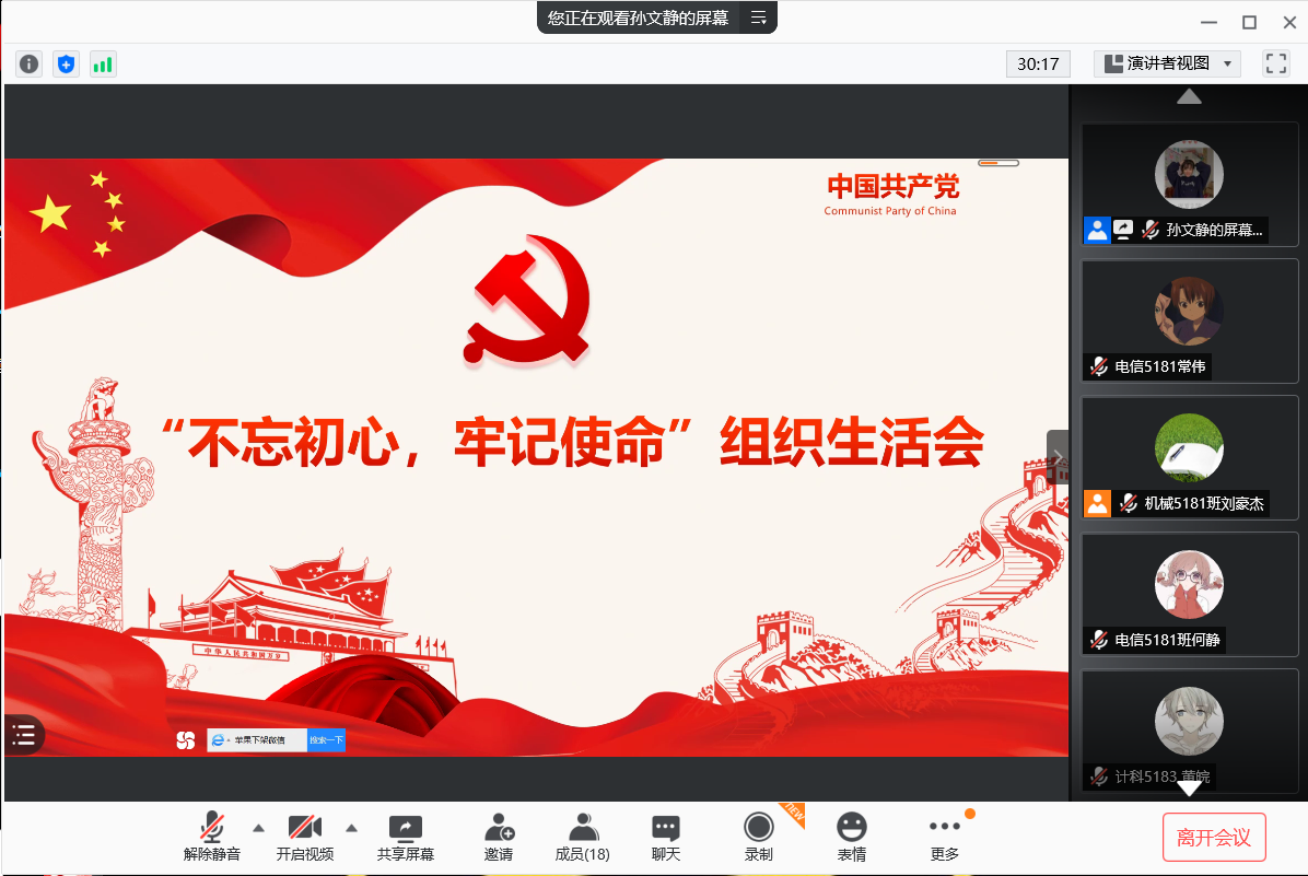 本网讯(员工记者 常伟)1月11日晚,在腾讯会议平台,我系员工党支部开展线上12月份政治学习、“支部主题党日”活动和2020年专题组织生活会暨民主评议党员会议。支部全体党员参加。