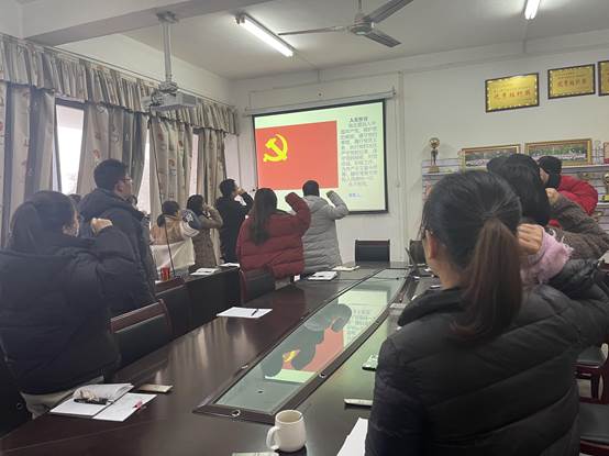 首先在支部书记的带领下,所有老师重温入党誓词,然后政治学习阶段,由教工党支部书记呙明辉带领大家集体学习了习近平:坚持用马克思主义及其中国化创新理论武装全党、习近平致信祝贺首届中国网络文明大会召开强调广泛汇聚向上向善力量共建网上美好精神家园、中国共产党第十九届中央委员会第六次全体会议公报、中共中央关于党的百年奋斗重大成就和历史经验的决议、习近平:关于《中共中央关于党的百年奋斗重大成就和历史经验的决议》的说明等11项内容。
