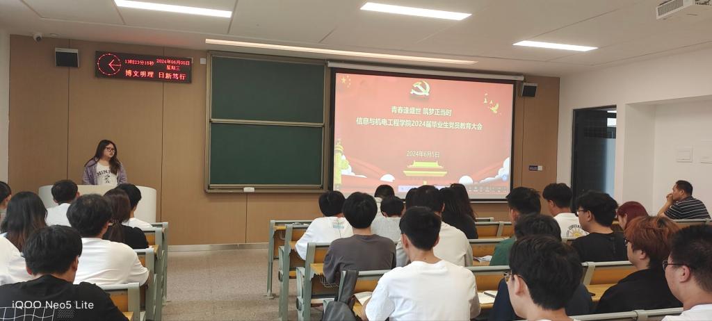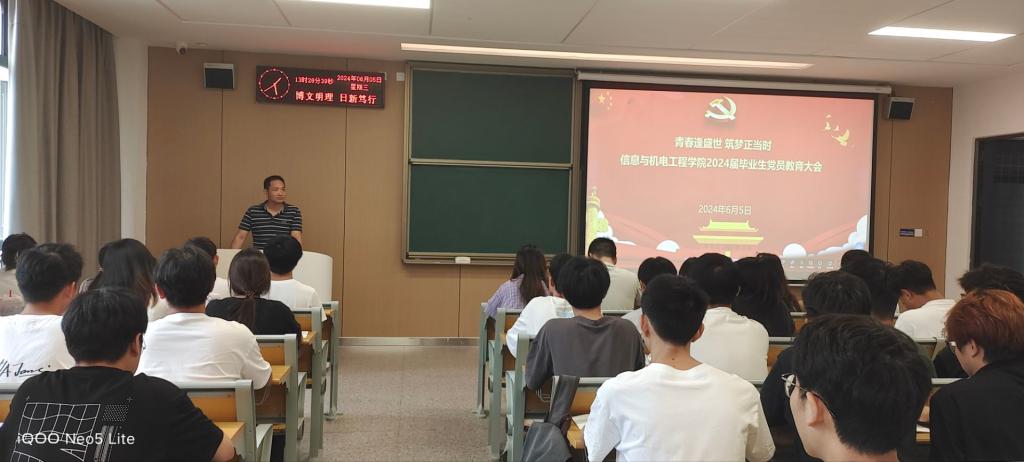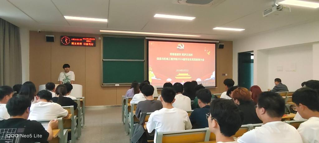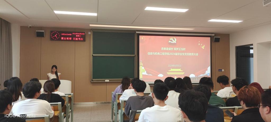 本网讯 (通讯员 孟娜/文 孟娜/摄) 为进一步强化毕业生党员教育,激励毕业生党员坚定理想信念、牢记党员的身份,帮助毕业生党员做好从公司到社会的角色转变,6月5日,公司于A-208教室开展“青春逢盛世,筑梦正当时”2024届毕业生党员专题教育,公司党总支书记吴海良、员工党支部书记王大专、毕业生辅导员出席,全体毕业生党员参加。