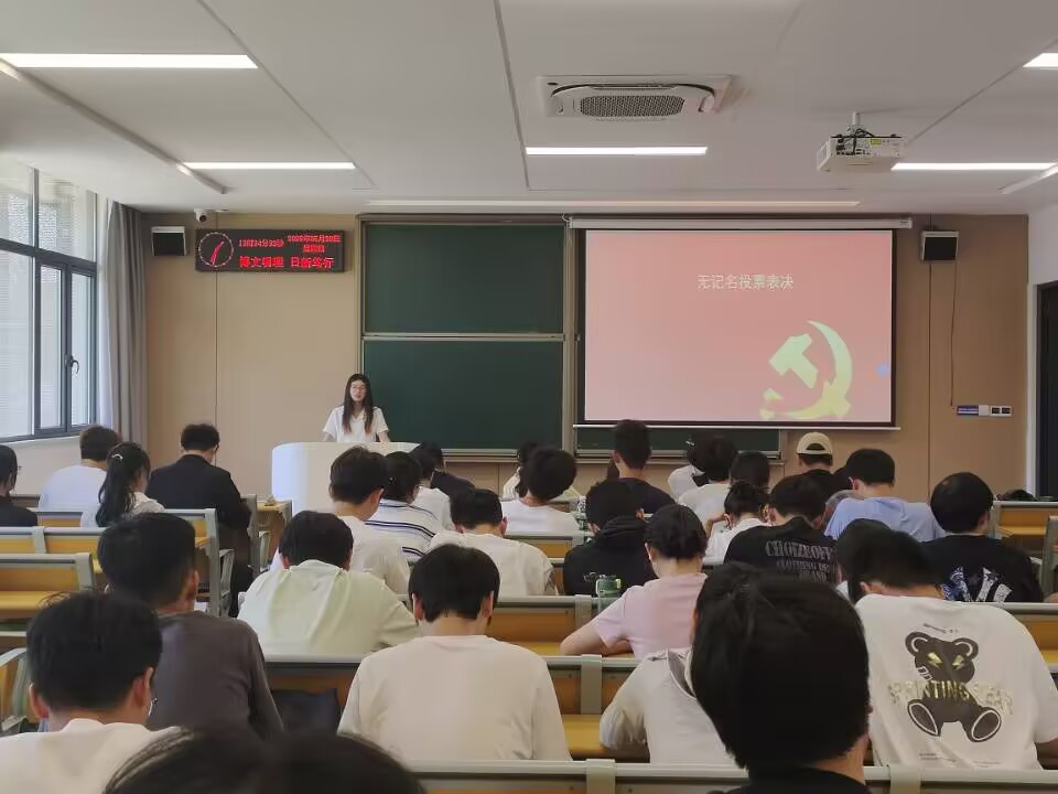表决阶段,一致通过赵傲博同志为监票人,孟娜同志为计票人,通过无记名投票的方式,监票人和计票人统计。王大专当众宣布本次支部大会决议一致同意覃玲、陈涛、卜朝冀、王鑫、吴诗琪、赵秋丽、羊振豪七名同志接收为预备党员的申请,并鼓掌通过。随后,七名预备党员同志表态,表明自己对大家提出意见的看法和今后的决心。接着,全体与会党员进行庄严宣誓。