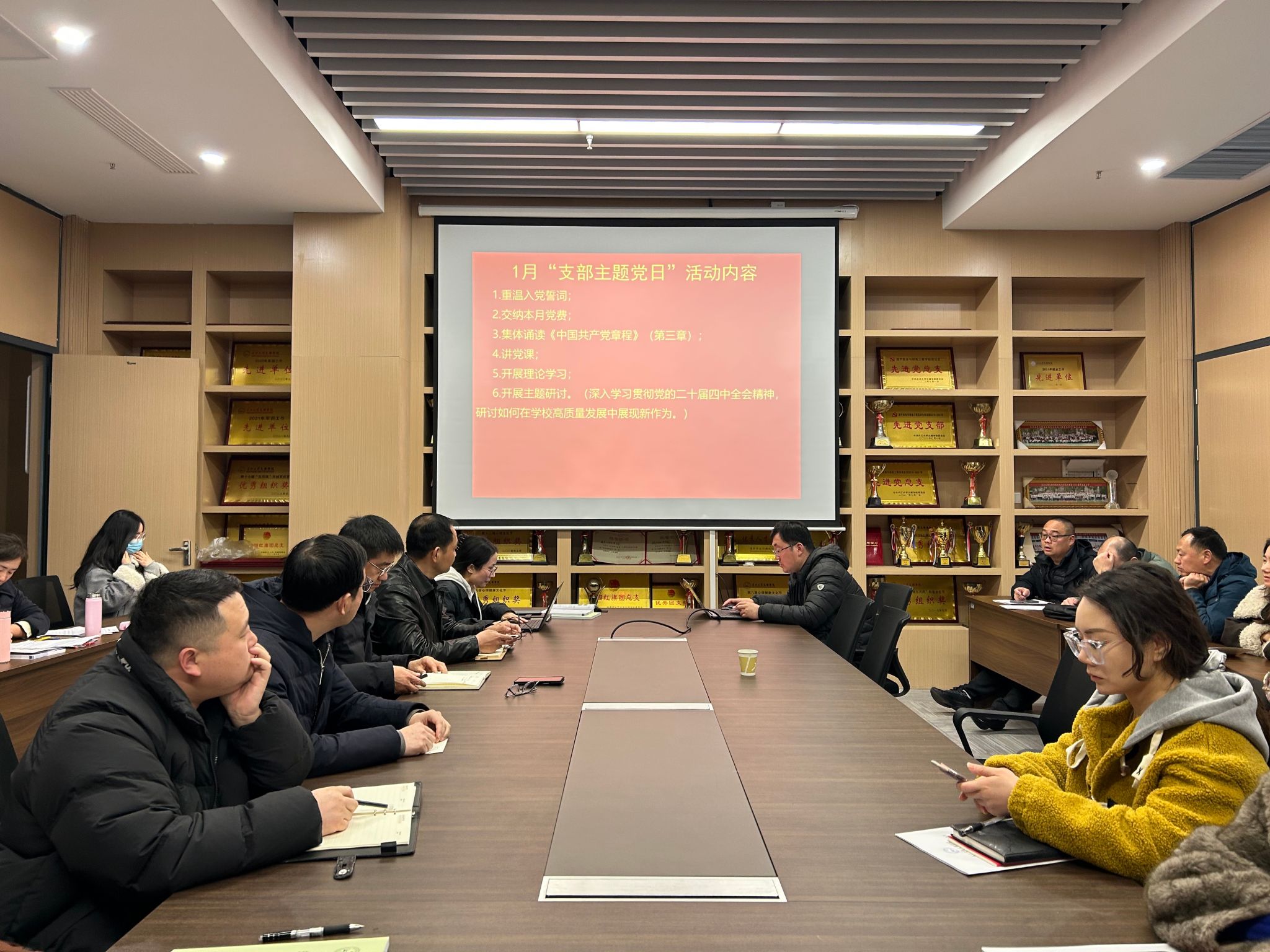 在支部主题党日活动中,全体党员重温入党誓词、交纳党费,集体学习《中国共产党章程》(第三章);学习国家主席习近平发表的二〇二六年新年贺词;学习中共中央政治局召开的会议内容,会议研究部署党风廉政建设和反腐败工作,中共中央总书记习近平主持会议;学习习近平在中央农村工作会议上对做好“三农”工作作出的重要指示;学习《求是》杂志发表的习近平总书记重要文章——《学习好贯彻好党的二十届四中全会精神》;学习郭小容在公司开展“大思政课”宣讲的内容;学习王建平宣讲党的二十届四中全会精神:奋力谱写特色高水平大学建设新篇章 ;学习省纪委监委公开通报5起违反中央八项规定精神典型问题等内容。