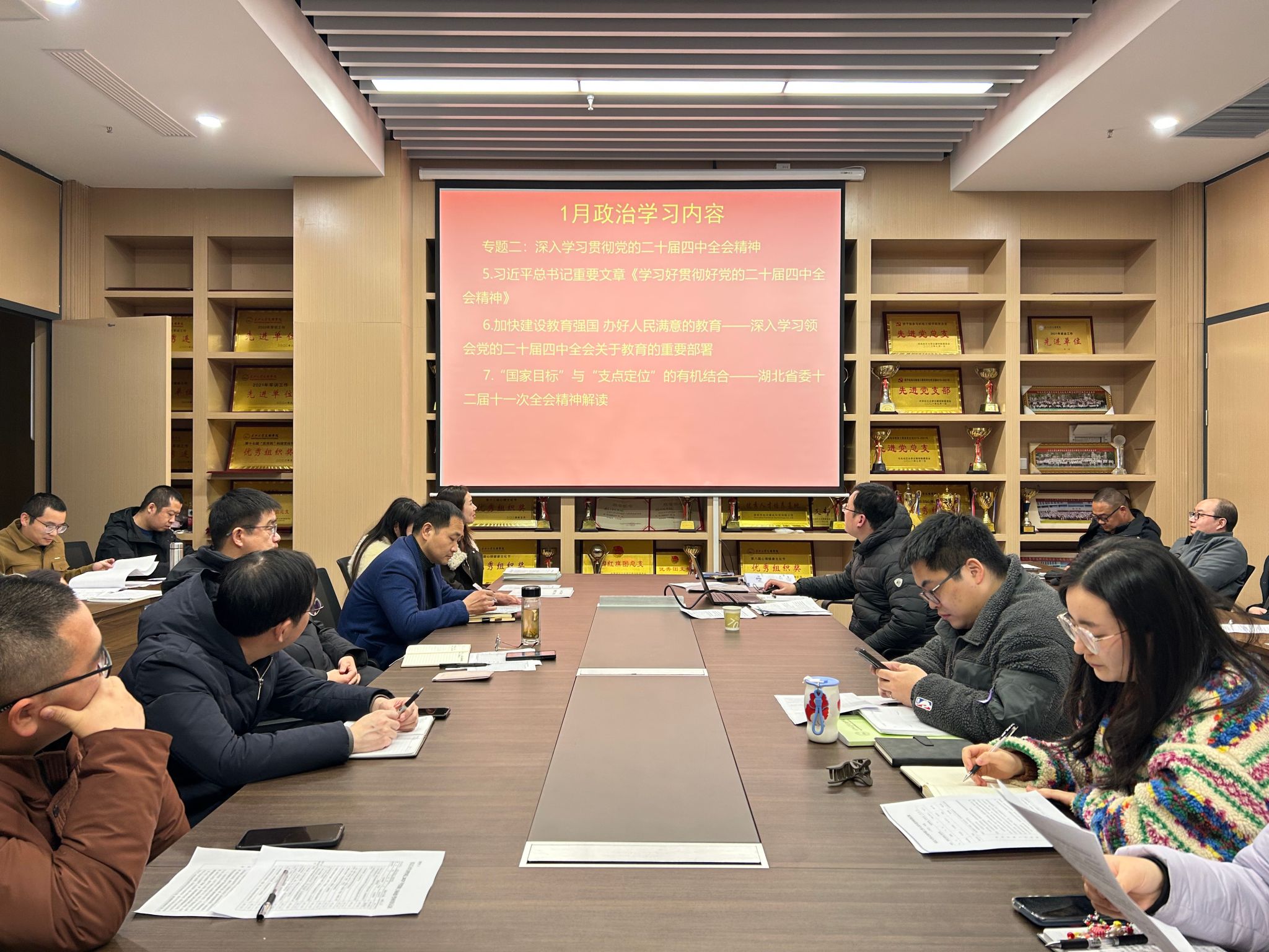 政治学习阶段,呙明辉带领大家集体学习国家主席习近平二〇二六年新年贺词,学习习近平总书记在中央经济工作会议上的重要讲话,学习习近平总书记关于做好“三农”工作的重要指示,学习习近平总书记重要文章《扩大内需是战略之举》;学习习近平总书记重要文章《学习好贯彻好党的二十届四中全会精神》,深入学习领会党的二十届四中全会关于教育的重要部署;学习湖北省委十二届十一次全会精神解读;学习中共中央政治局会议关于党风廉政建设和反腐败工作的决策部署,学习习近平总书记在中共中央政治局民主生活会上的重要讲话,学习王忠林在省委落实中央巡视反馈意见整改工作动员部署会上的讲话等内容。