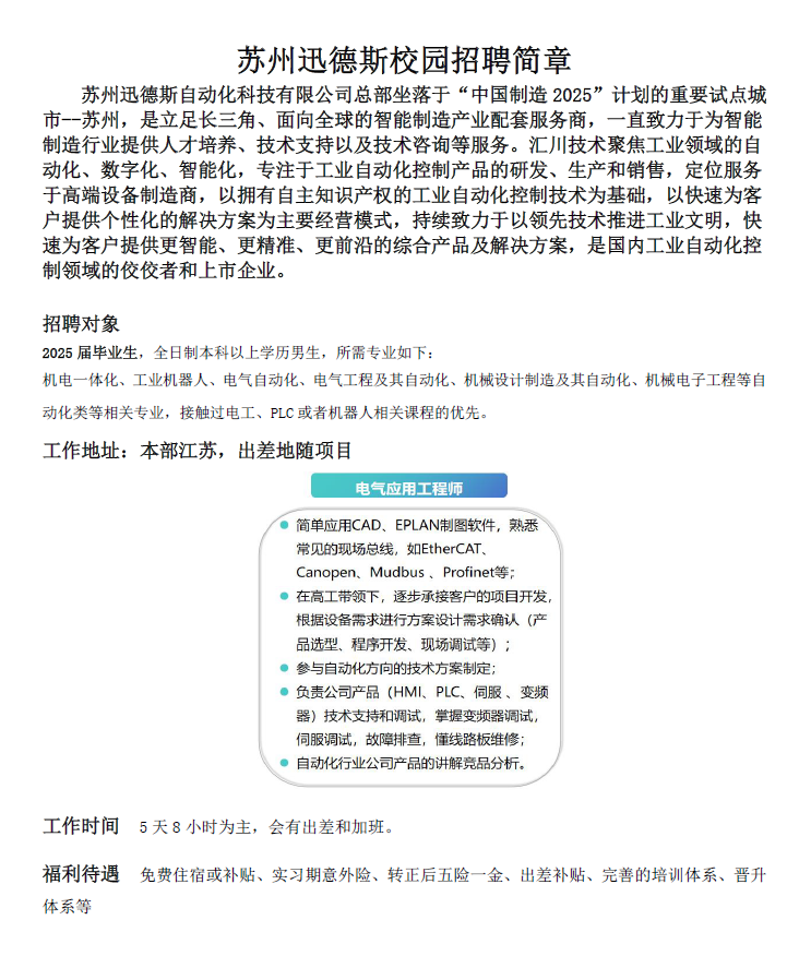 苏州迅德斯校园招聘简章