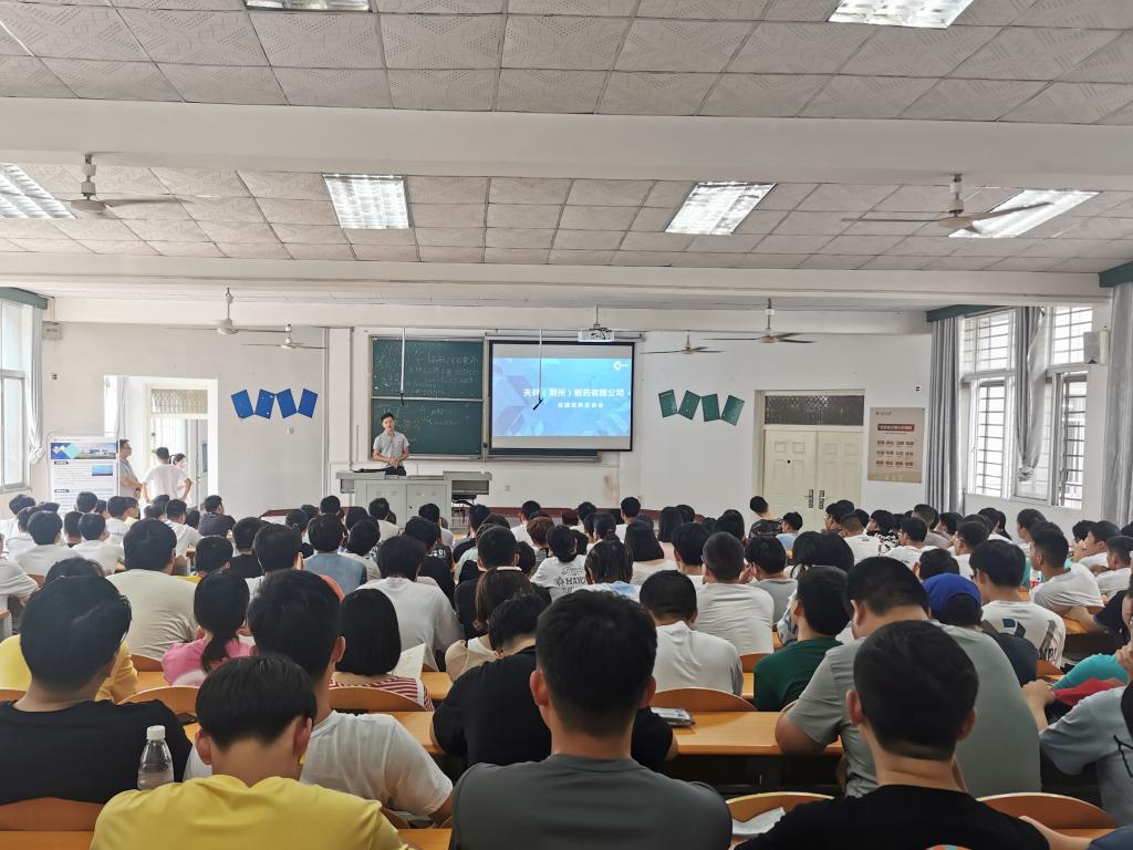 会议开始,该公司人力主管彭涛通过播放宣传视频,向同学们介绍了该公司的发展历程和所获成就。随后,他围绕“员工福利”、“企业文化”、“环境展示”、“薪酬组成”、“培养策略”五个方面对该公司的具体情况进行介绍,详细阐述了该公司的招聘岗位及岗位需求。会议结尾,招聘人员与同学们积极互动,沟通交流,耐心地解答了同学们的疑问,并邀请有兴趣的同学们扫码加群作进一步了解。