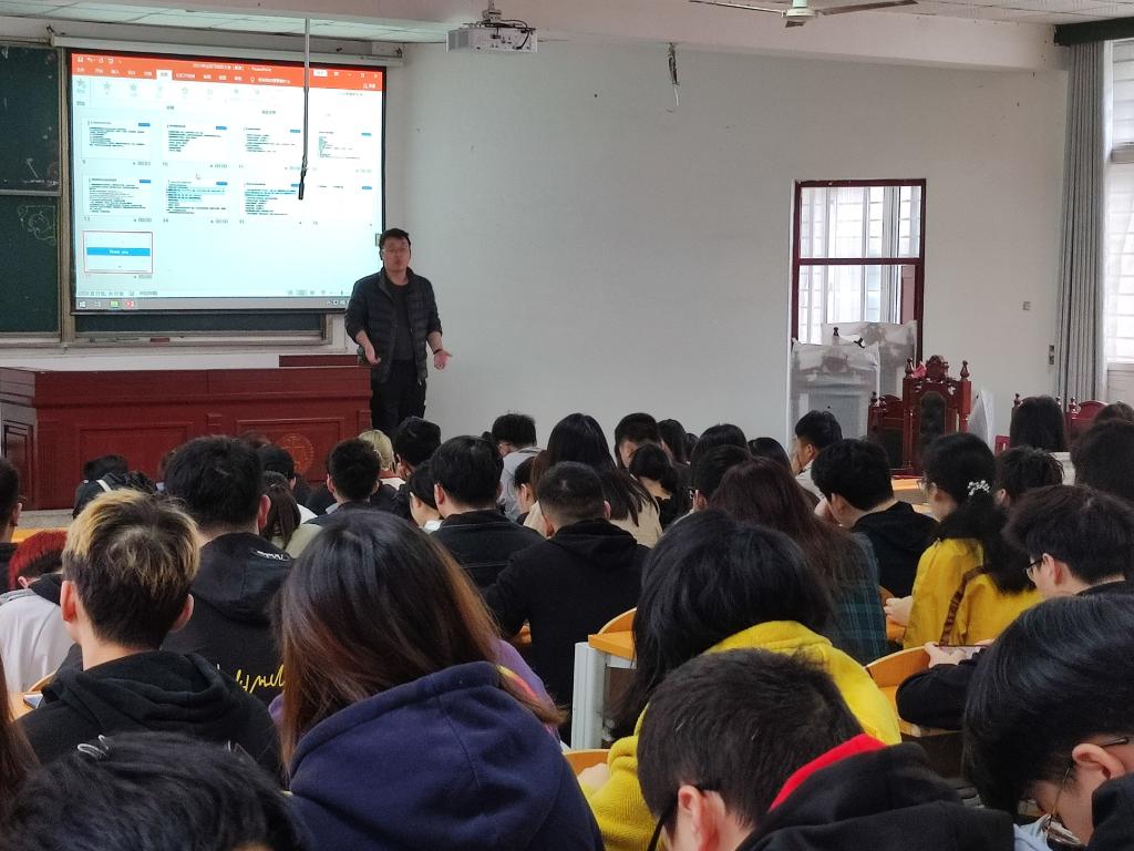 会议开始,呙明辉结合PPT,围绕“毕业论文”、“论文培训”、“毕业实习”等方面,向同学们罗列了论文的具体要求和注意事项,宣布了实习指导老师名单和未来工作部署。随后,他针对实习工作中的常见问题展开讲解,并告诫毕业生保持与老师的密切联系,发扬不懂就问精神,避免落入企业陷阱。最后,他对同学们提出的问题进行一一解答。