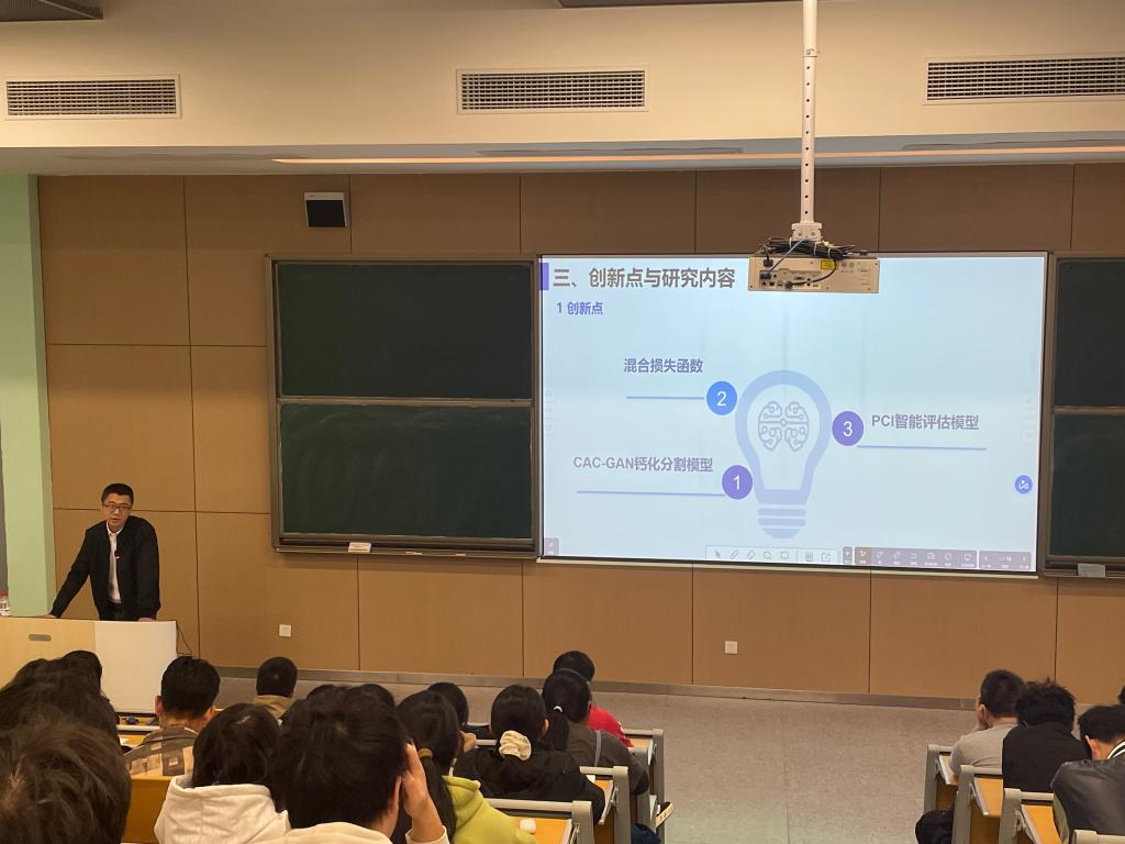 谢凯以“人工创精彩,智能领未来”为题,分享了他在人工智能领域的研究成果和实践经验。他以智能人脸识别门禁系统、安全驾驶检测系统、智慧医疗下冠心病风险监测为例,详细介绍了人工智能在各个领域的应用和发展前景,并对大创项目书的撰写进行了全面指导,为同学们提供了宝贵的经验和建议。