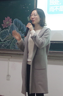 易丹以老员工时下关注的社会热点为切入点,从爱情是什么、恋爱男女关系、异性生理心理差异、恋爱后如何相处、男女生情感需要及情绪应对方式等五个方面进行阐述,她用生动的案例、风趣的讲解与师生探讨老员工恋爱心理的话题,并提示同学们在大学阶段爱与归属的需要是人最大的需要,人格健全,爱情才更幸福。