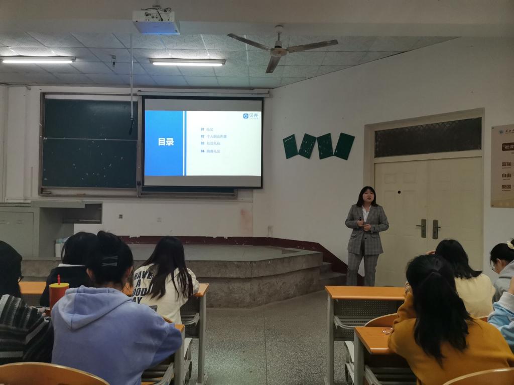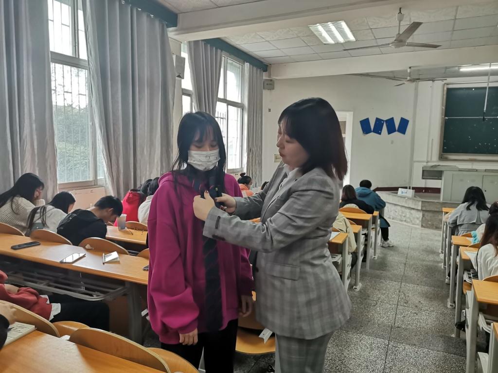 讲座开始,郑莉老师从个人职业形象、社交礼仪、商务礼仪几个方面向同学们介绍就业。她说,语言表达得当、正装穿着规范、职业形象得体等商务礼仪是就业很重要的一环,给面试官良好的第一印象能帮助同学们获得更好的就业机会。同时,她向同学们介绍了自身的求职和工作经历。介绍了面试的过程,讲解面试中常见的问题。讲解过程中,向同学们展示了正确的领带系法,并邀请同学上台展示成果。讲座上,同学们积极的与老师互动,现场气氛高涨,学习兴趣浓烈。