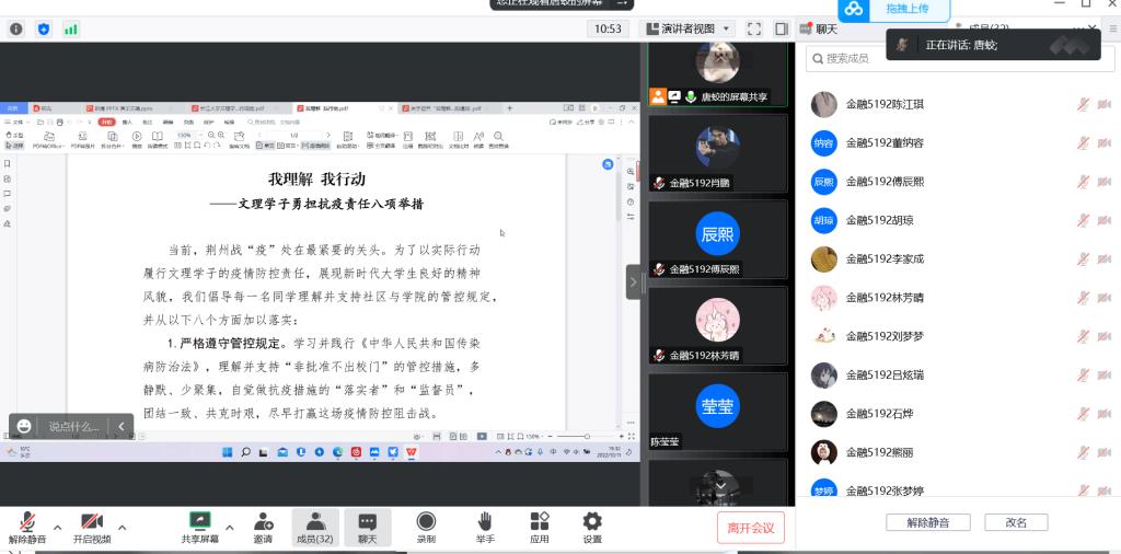 本网讯(见习记者 李欣怡)为了以实际行动履行文理学子的疫情防控责任、展现大学 生的良好精神风貌,经法系以班级为单位于10月11日召开“我理解,我行动”线上主题班会,以此增强我系员工的疫情防范意识。经法系辅导员分别参加各班主题班会。