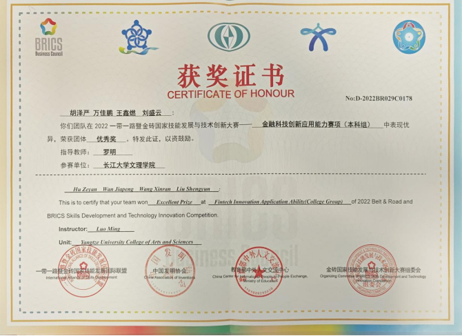 2022一带一路暨金钻国家技能发展与技术创新大赛优秀奖