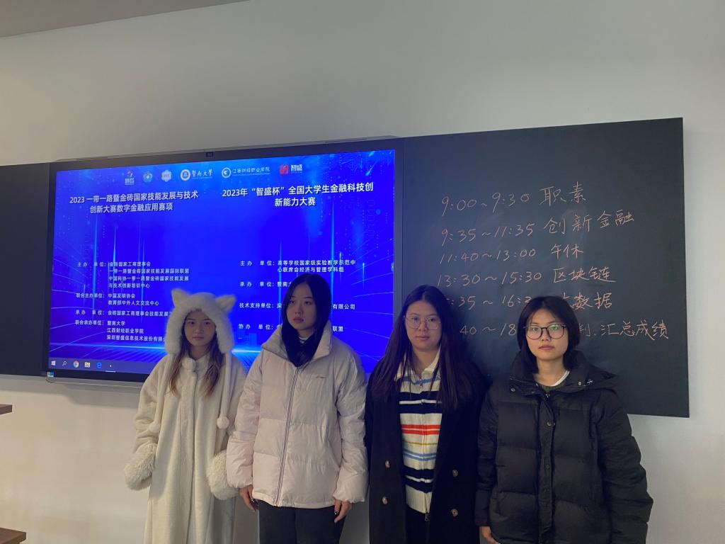 近日,从2023一带一路金砖国家技能发展与技术创新大赛上传来喜讯:由经法系郭芯爱、王华欣、李思思、曾清清4名员工组成的1支比赛队伍,在陈莉和杨默老师的带领下,经过与全国95支队伍激烈角逐,最终荣获优秀奖。